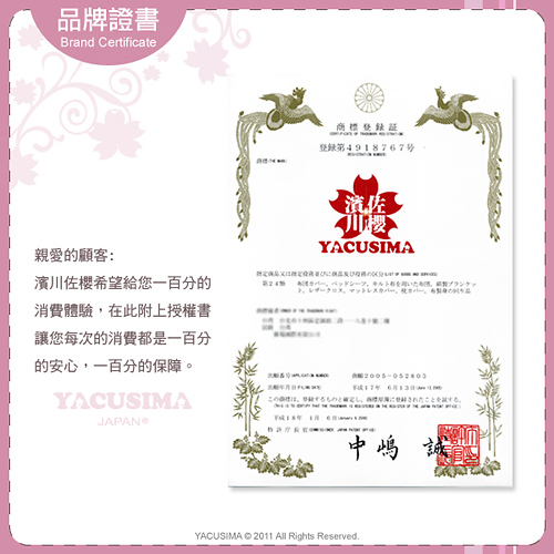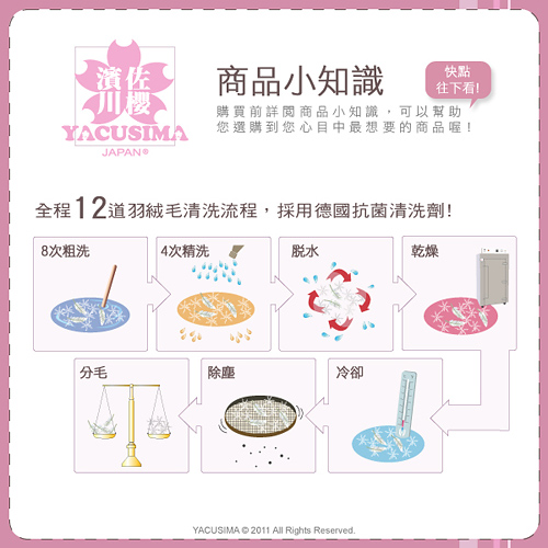 YACUSIMA濱川佐櫻寢具以嚴謹的態度,專業的品質,站在使用者的立場思考設計,打造高質感實用寢具聞名,羽絲絨系列被枕皆委託台灣專業知名大廠生產,秉持著一貫的品牌精神,從原料的挑選,到包裝完成製作,在在讓您體驗到我們的體貼與用心,絕對是追求高品質睡眠的不二之選。